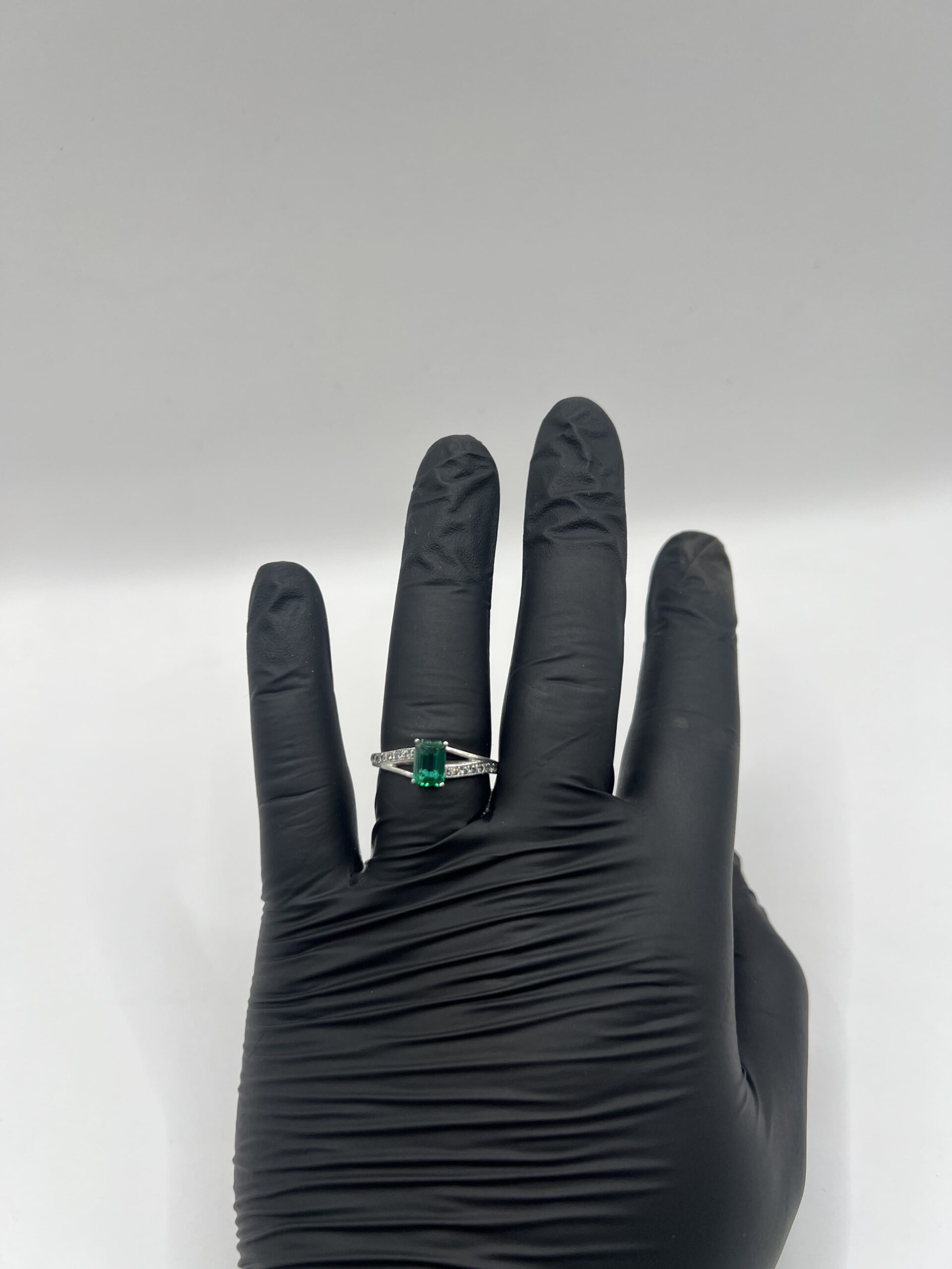 ANILLO PARA DAMA ENTRELAZADO CON ESMERALDA LAB 5X7 0.70ct