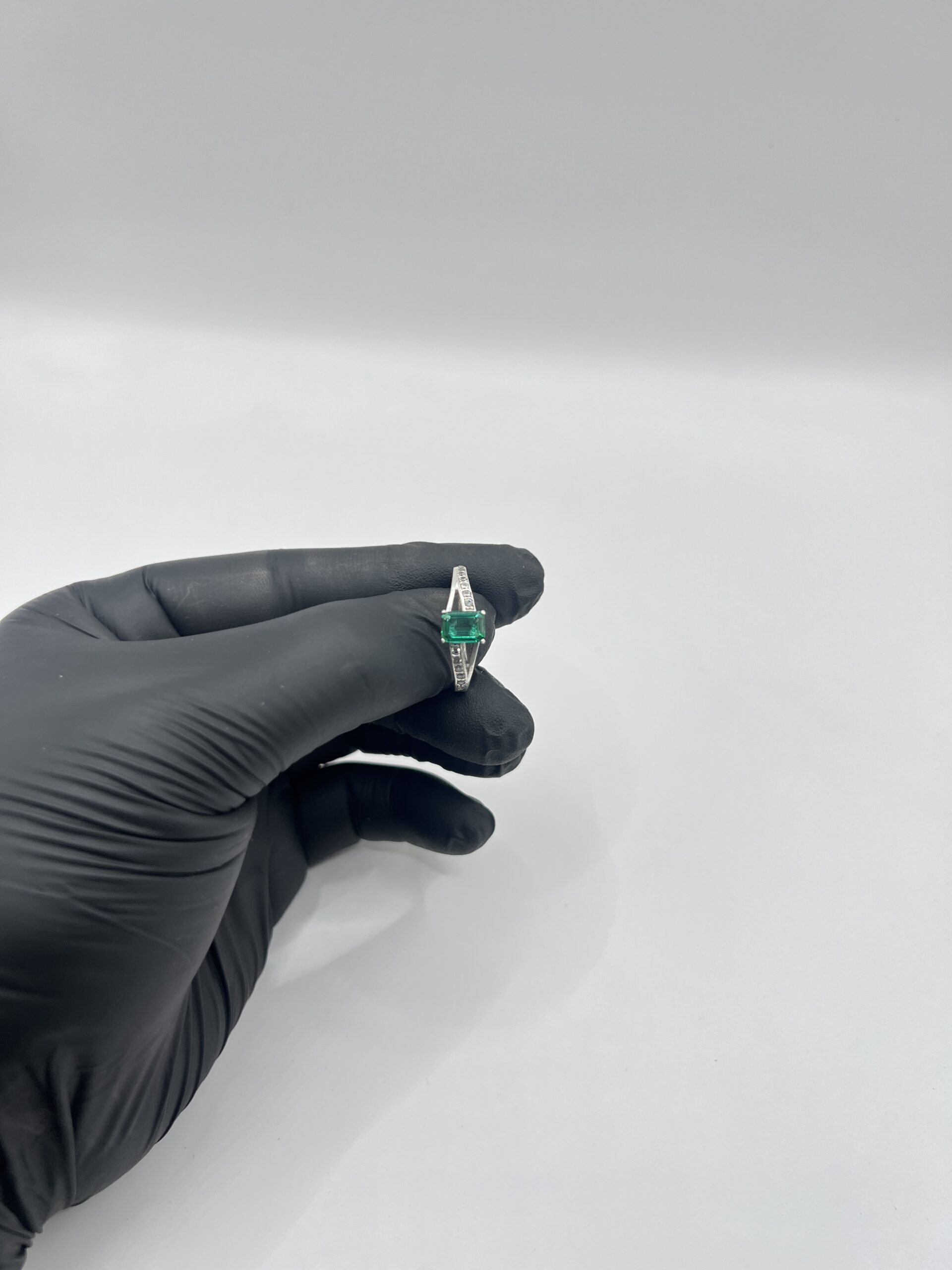 Anillo entrelazado para dama con esmeralda de LAB 5X7 0.70ct para utilizar en los momentos más elegantes, fabricado en plata 925 u oro blanco 750
