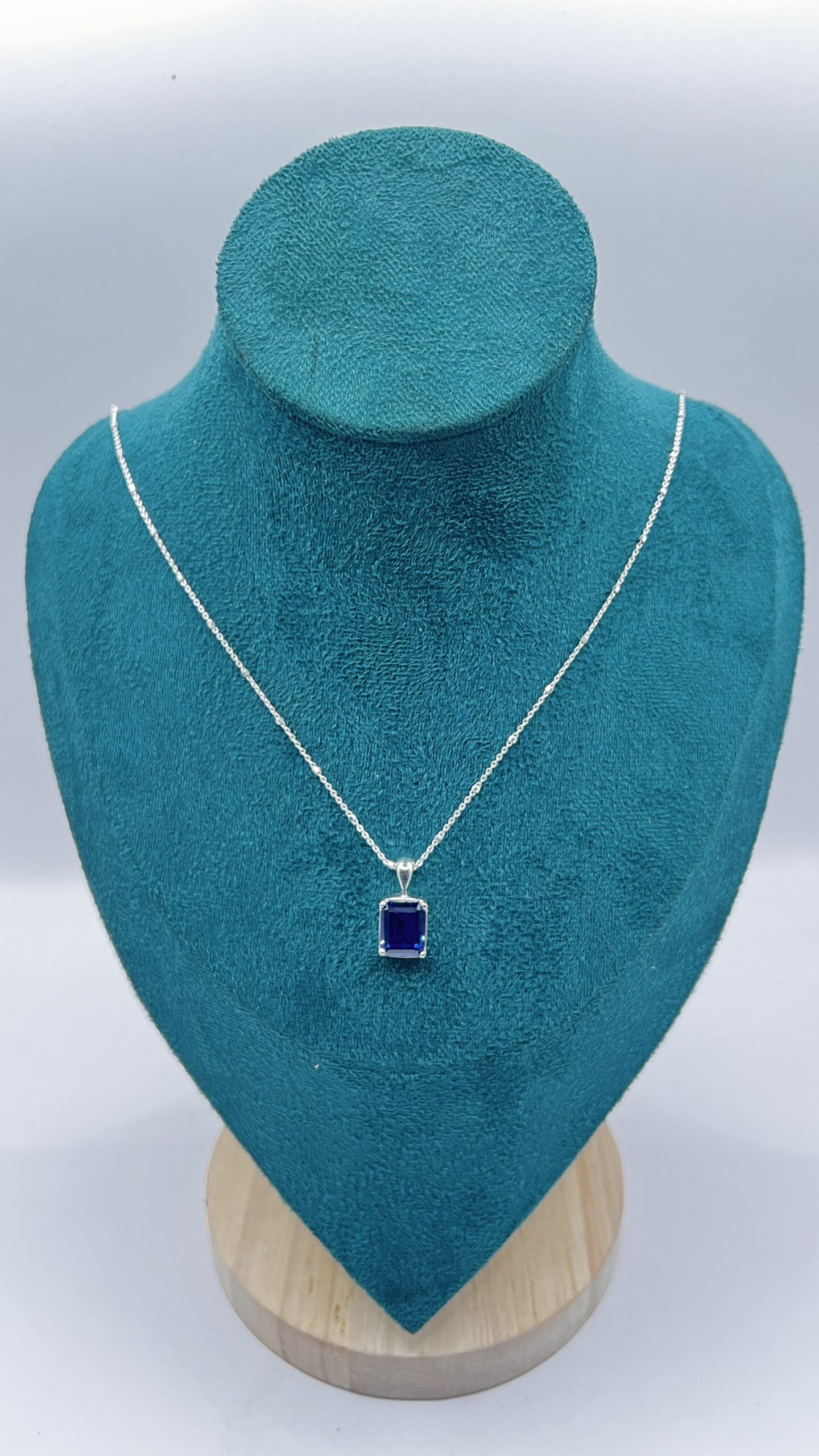 DIJE ECO DEL CIELO PLATA LEY 925 CON ZAFIRO DE LAB 8X10 4.15ct PARA DAMA